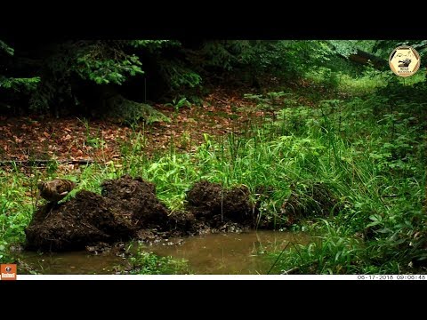 Păsări de pădure precum Ciocănitoarea neagră (Dryocopus martius), Mierla (Turdus merula) şi Sitarul de pădure (Scolopax rusticola) în căutarea hranei.